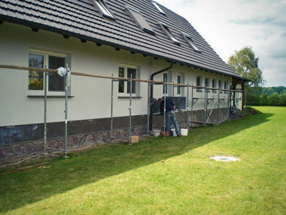 Wir bieten Ihnen mit unseren Partnern eine breite Palette von Grundputzen, wie z.B. den klassischen Kalkzementputz an. Dieser Putz hat sich immer wieder bewährt und ist durch seine wasserabweisende Eigenschaft ideal für den Außenbereich. Mit seiner Widerstandskraft und Langlebigkeit schützt er das Mauerwerk zudem ideal gegen Witterungseinflüsse.